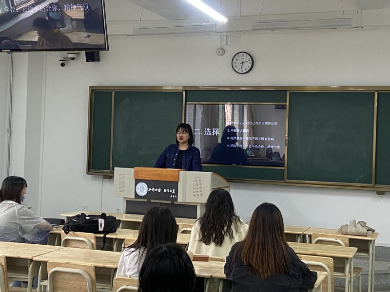 赵田同学考入上海财经大学,她主要从“选择”和“心态”两个方面进行了分享,她说:“择校时不要贪大图高,备考时放平心态,不要被其他的事物干扰,也不要跟着其他人的节奏走,要掌握好自己的复习进度”。