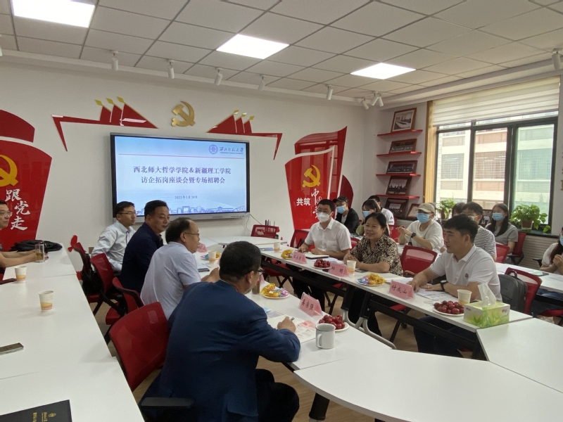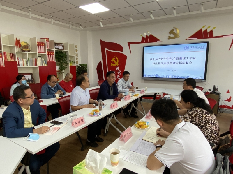 5月30日,我院举办新疆理工学院访企拓岗座谈会暨专场招聘会。新疆理工学院人文科学学院党总支书记邱明和付成山、王永强3位老师进行招聘宣讲,学校招生就业处处长郭建东、副处长王海波参加座谈,学院党总支书记李光华、院长姜宗强、辅导员和研究生导师代表及未就业硕士研究生参会。