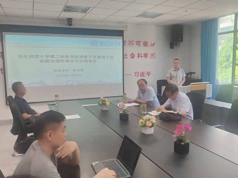 6月29日下午,李永亮副院长在学院会议室,作赴新加坡研修学习报告,分享学习体会和心得,全院教职工参加报告会。